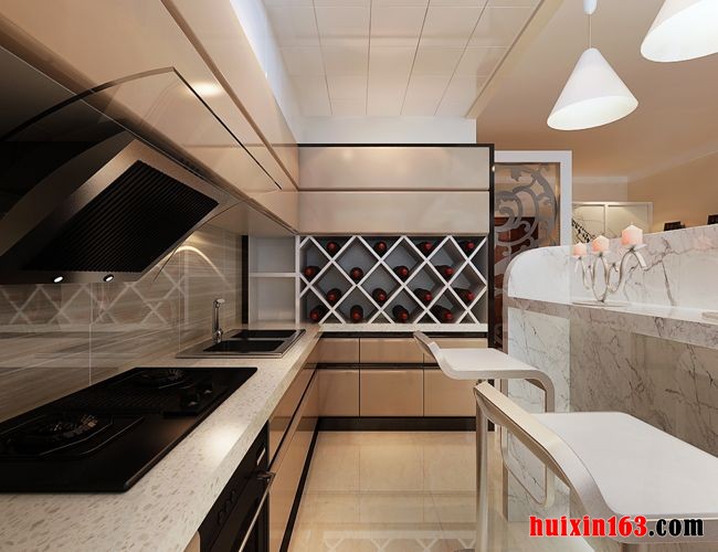 在客厅里面主要是沙发和茶几占用了比较大的空间,通过将沙发靠墙摆放,能够让空间得到更加合理的运用。棕色的真皮沙发搭配黑色的简约风格的茶几,在茶几和电视之间保留一个一米见宽的通道,在看电视的时候刚好保持在一个比较舒服的距离。电视背景墙的后边就是厨房,厨房和客厅之间保持了一个比较通畅的格局,厨房的半面墙壁刚好充当了电视背景墙,在电视背景墙上的灯光,能够顾及到厨房和客厅两个空间,也是一个比较节能的做法。在电视背景墙上采用黑白两色的马赛克拼接出来一些精美的花纹,看起来也比较有质感。在入户门的位置采用透明的夹花玻璃作为玄关,能够营造出若隐若现的效果,也算是比较独特的创意了。