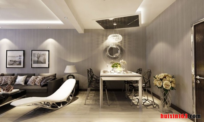 在客厅的电视背景墙上采用文化砖进行装饰,在墙面的顶部采用一条镜子进行装饰,电视背景墙旁边的卧室门也被包含在了电视背景墙中,电视柜上边的隔板几乎和墙面的长度等长,在加上顶面的镜子反射的效果,坐在沙发上观看电视,就像是面对着一栋室外的房子,让人感觉心情更加的舒畅。在顶面上采用了大方简洁的石膏板吊顶结构,配合明亮的灯带环绕房顶一周,在室内射下柔和靓丽的光线。在地面上是原木色的实木地板,搭配现代感十足的沙发和茶几,形成一种跳跃的感觉。