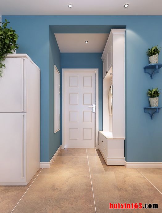 在客厅里面到处充满了柔美的线条,顶面上是一个圆角的方形吊顶结构,周边镶嵌上一圈明亮的灯带,环绕着中心的一盏黑色的铁艺吊灯,搭配墙面上的白色的隔板和随处摆设的一些小的绿植,让空间里面多了一些清新的自然气息。在电视背景墙上采用喷白的文化砖装饰,在电视背景墙旁边也采用了一扇白色的门,让空间感觉浑然一体。在地面上铺设的是深黄色的仿古砖,搭配实木花纹的凳子和田园花纹的布艺沙发让空间里面多了一些清新的田园风气。阳台和客厅之间的蓝色的垭口与白色的墙面相对比,打造出一些淡淡的地中海的感觉。