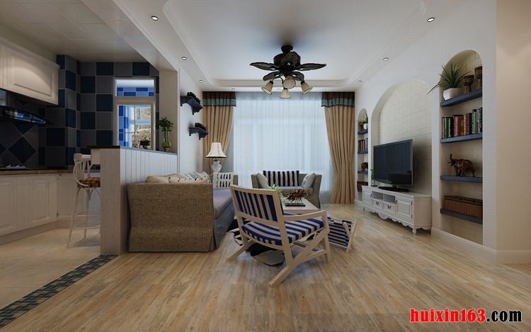 地中海在人们的心中就意味着海边沙滩和夏日度假的感觉,在炎热的夏季,感受阳光的温暖和温和的海风,将脚踏在柔软细致的沙子上面,体味那种细腻的质感,真是一种美的感受。在这次的装修项目中就采用了地中海的装修风格,将这套二居室89平米的空间打造出夏日度假一般的感觉。